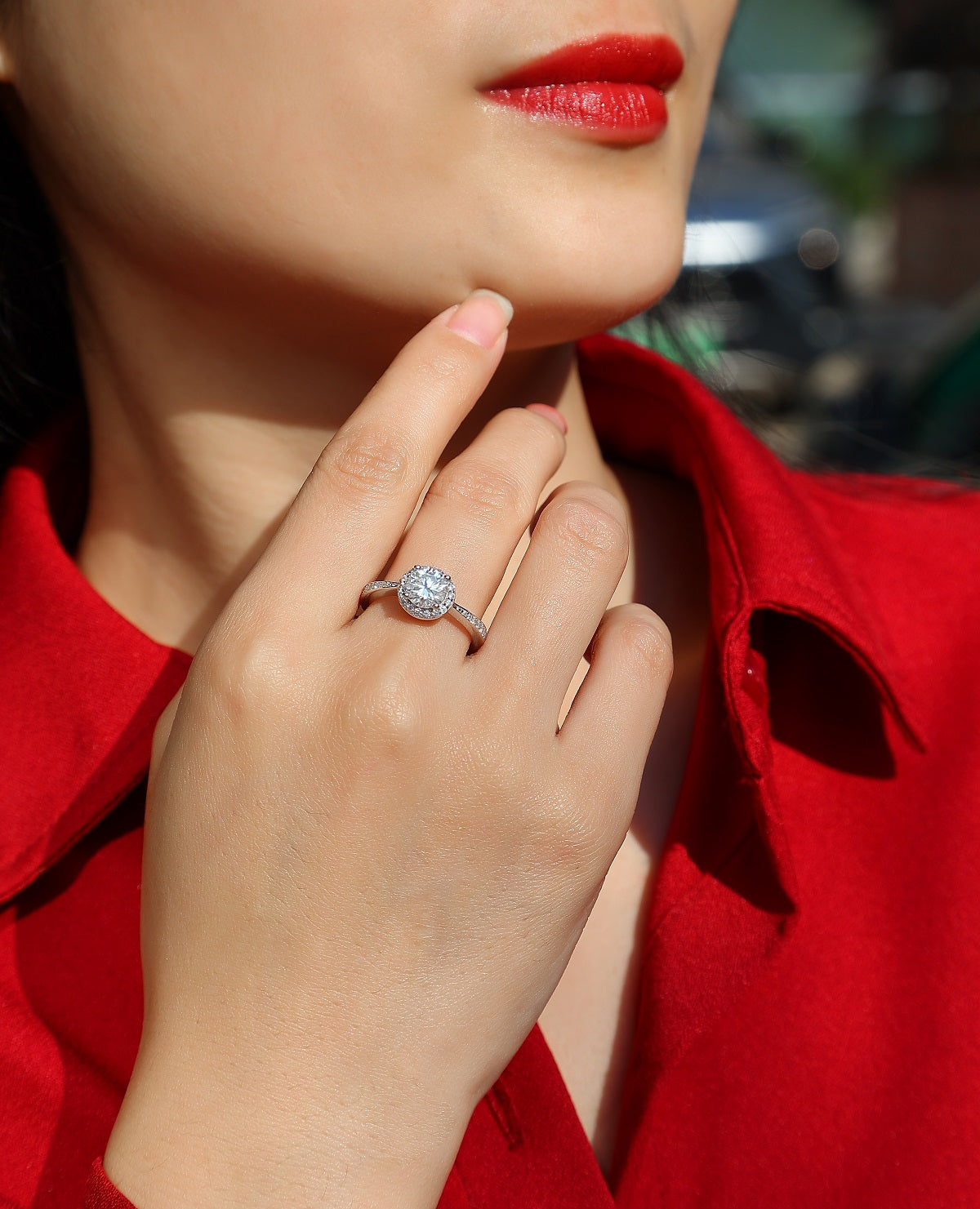「グラデーションのアームがラウンドカットの主石を引き立てて、すごくエレガントなんですよ〜。