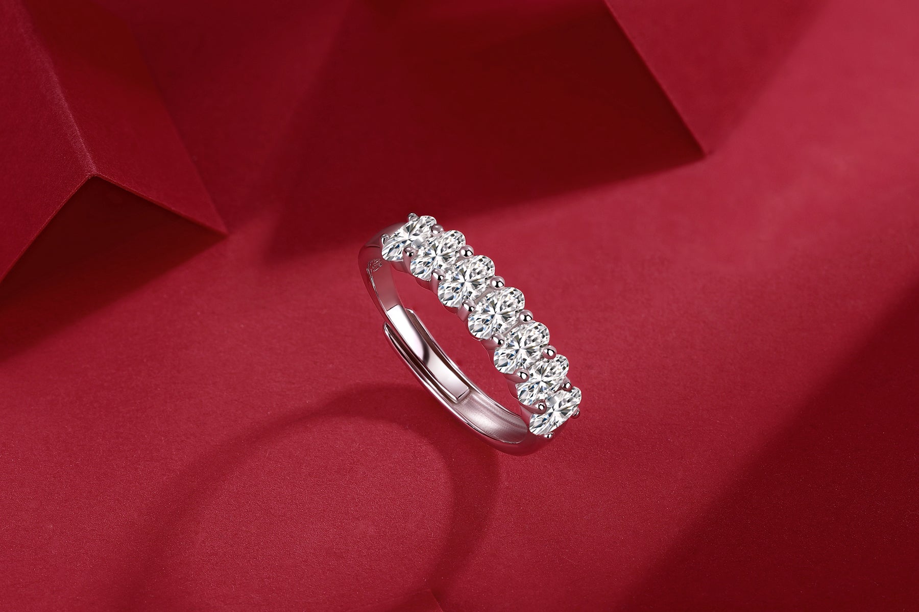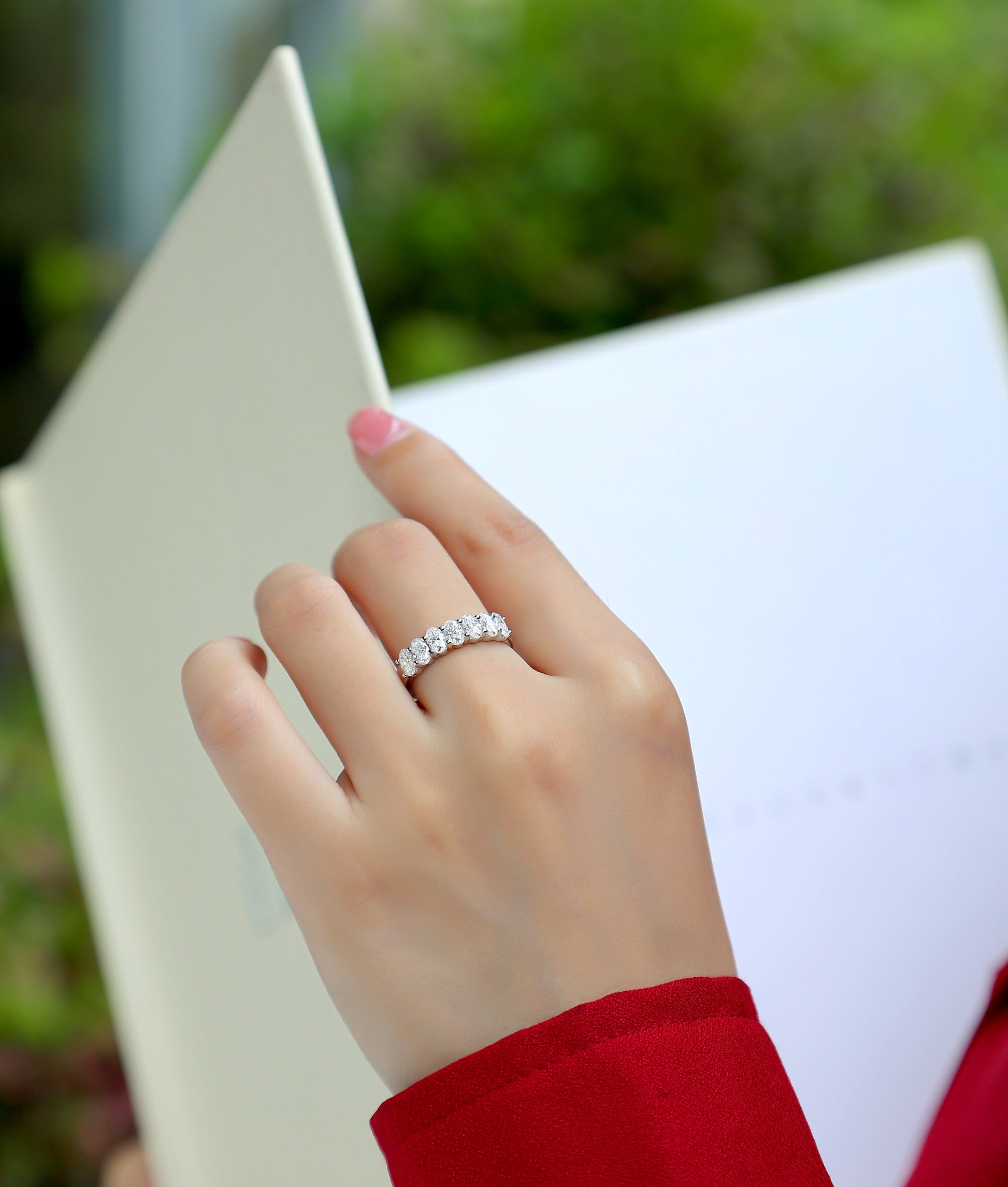 「一粒一粒のダイヤはオーバルブリリアントカットで仕上げられ、光を均等に反射して、まばゆい輝きを放つんです。」